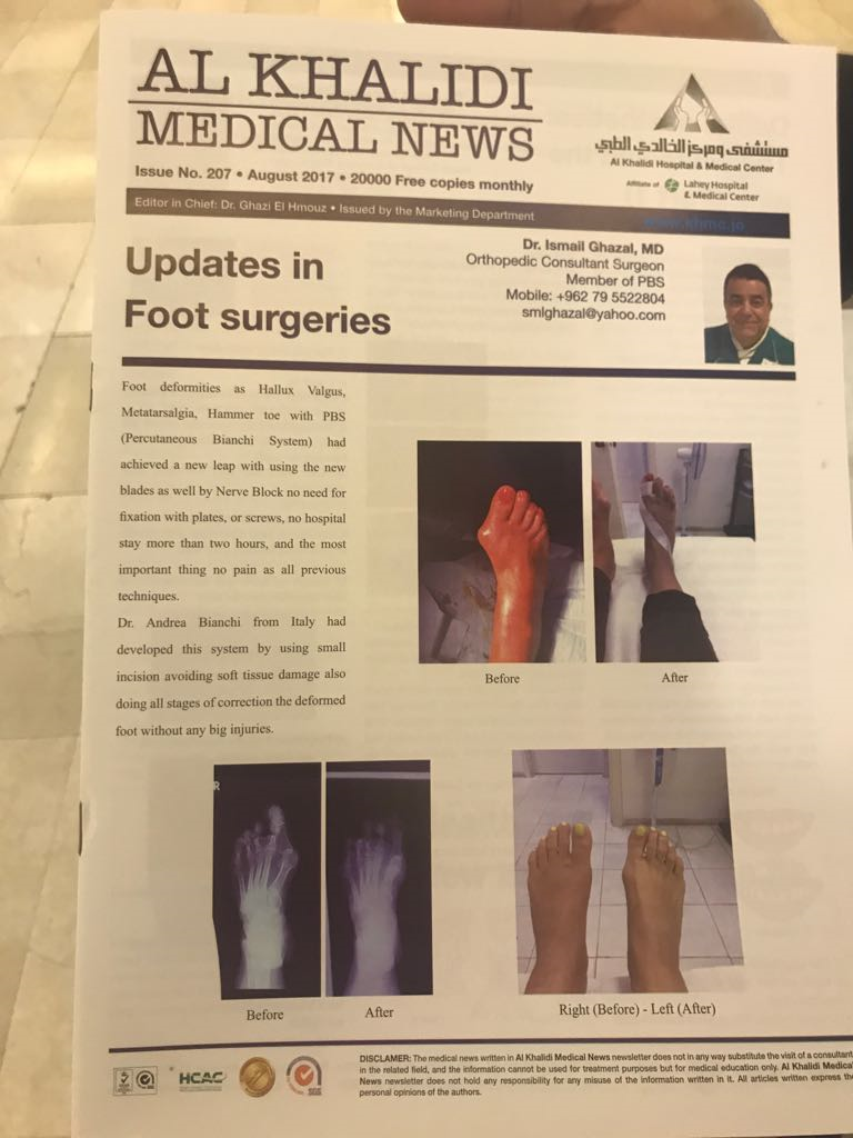 “Il segreto è la mininvasività” è il titolo dell’articolo che parla della tecnica PBS pubblicato dal mensile Ortopedici & Sanitari. Si parla delle caratteristiche dell’intervento di alluce valgo realizzato con tecnica PBS e soprattutto dell’ approccio chirurgico mini invasivo senza l’utilizzo di fili o chiodi perché la stabilizzazione avviene attraverso il bendaggio.