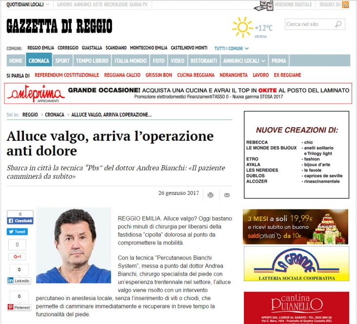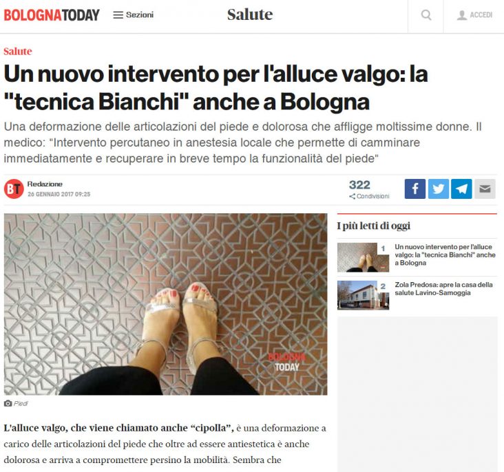 Bologna Today ha scritto un articolo sulla tecnica PBS di trattamento dell’alluce valgo.