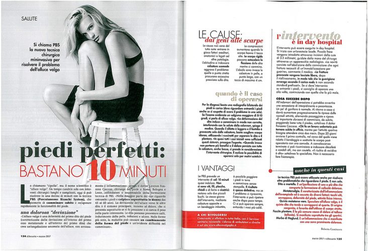 Nel numero in edicola “Viversani e belli” parla di alluce valgo e mette a confronto l’intervento tradizionale e l’intervento PBS per il trattamento dell’alluce valgo.